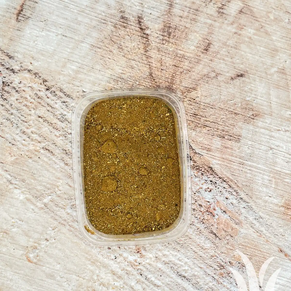 Eigen mengsel zonder zout van Puur Natuur specerijen. Specerijen zijn afkomstig van het Blauwe Huis & Vehgro. Inhoud 30 gram.