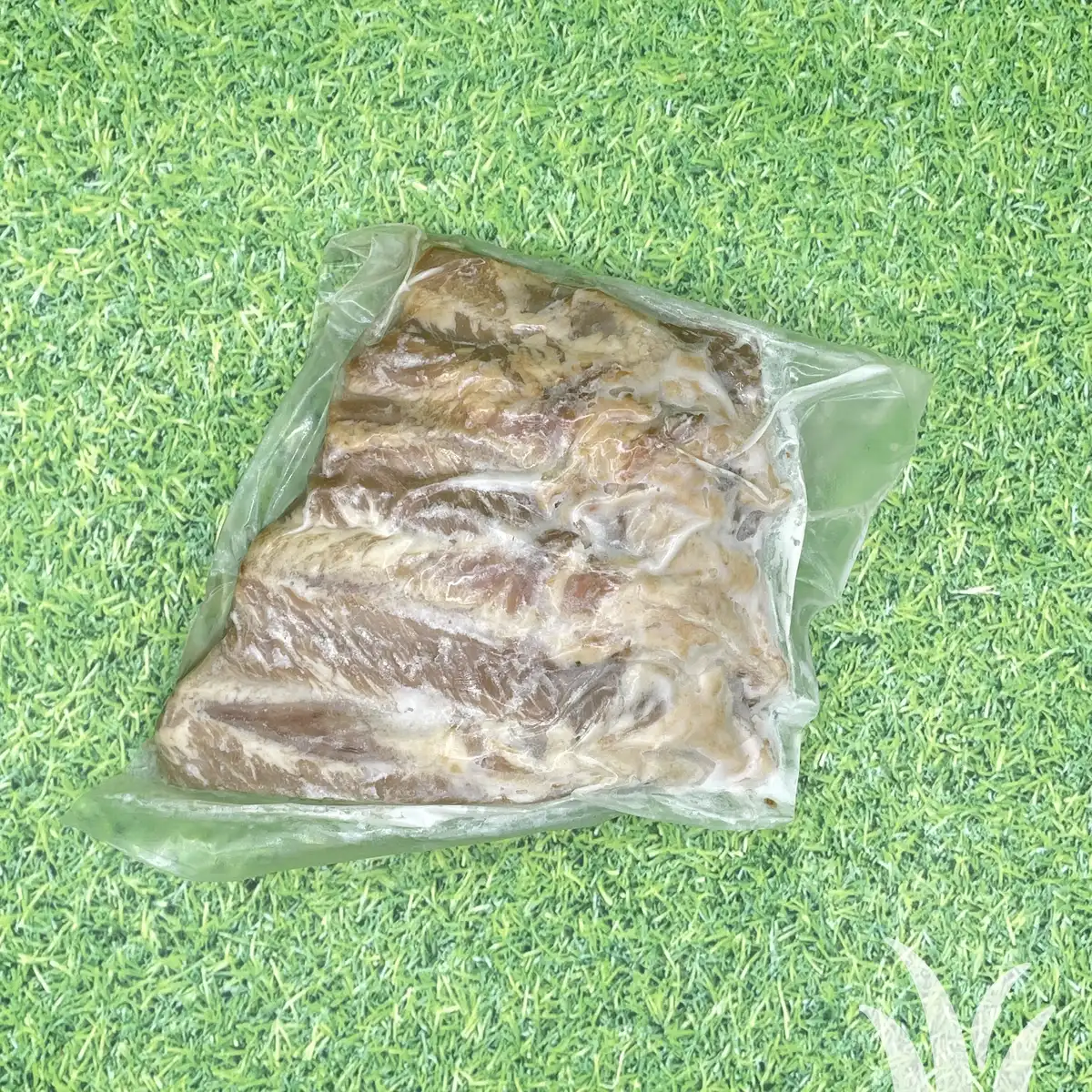 Buitenvarkens van Livar. Licht gepekeld,gerookt met eikenzaagsel en sous vide gekookt. Prijs per kilo; € 12,00 Gewicht/prijs kan variëren.