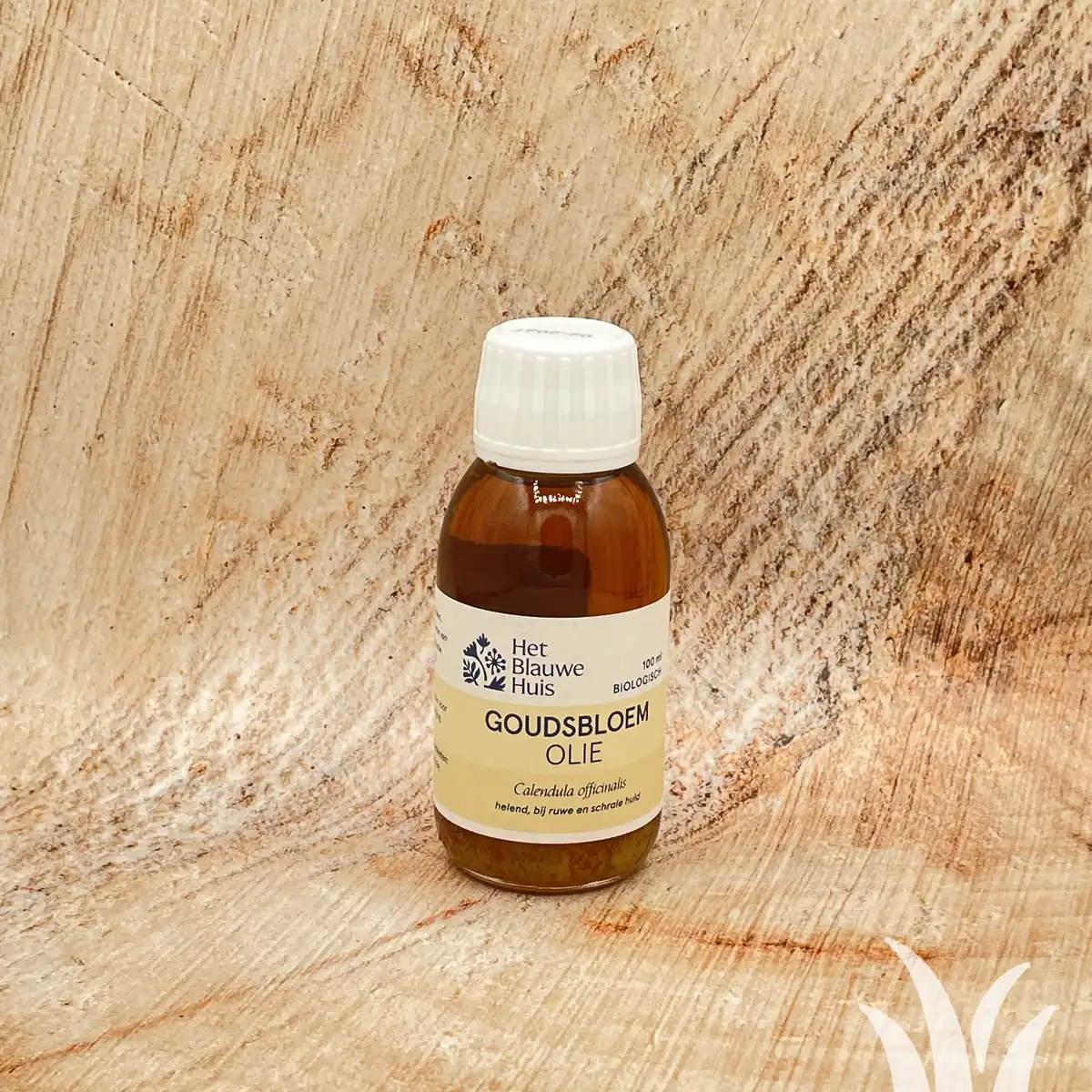 Puur Natuurprodukt van het Blauwe Huis. Bevat;koudgeperste olijfolie, goudsbloem inhoud 100 ml Voor uitwendig gebruik.massage of bad.