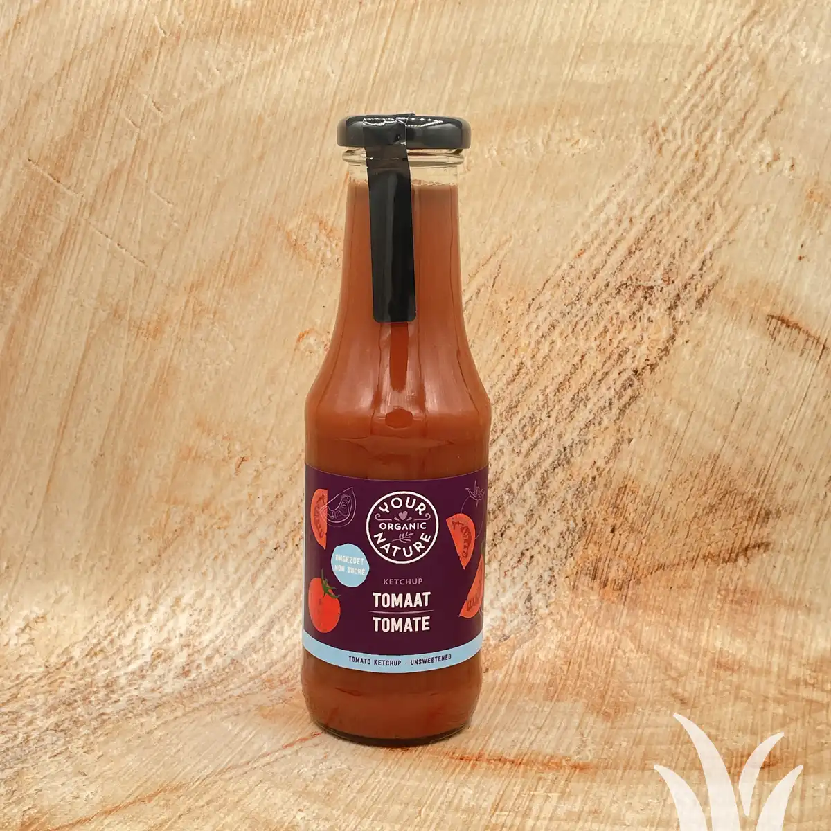 Puur Natuurprodukt van Udea. Bevat;Tomaten (73%)*, appelazijn*, rijstzetmeel*, zout, uipoeder*, knoflookpoeder*, peper*, SELDERIJpoeder*, MOSTERDzaad*, * Inhoud 325 ml