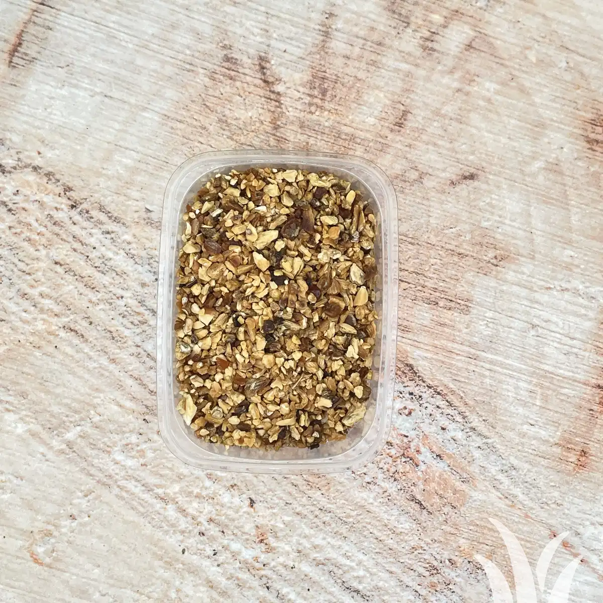Gedroogde knoflookstukjes van ca. 2 mm. Lang houdbaar(1 jaar);mits droog bewaard. Puur Natuur specerijen afkomstig van het Blauwe Huis & Vehgro. Inhoud 50 gram.