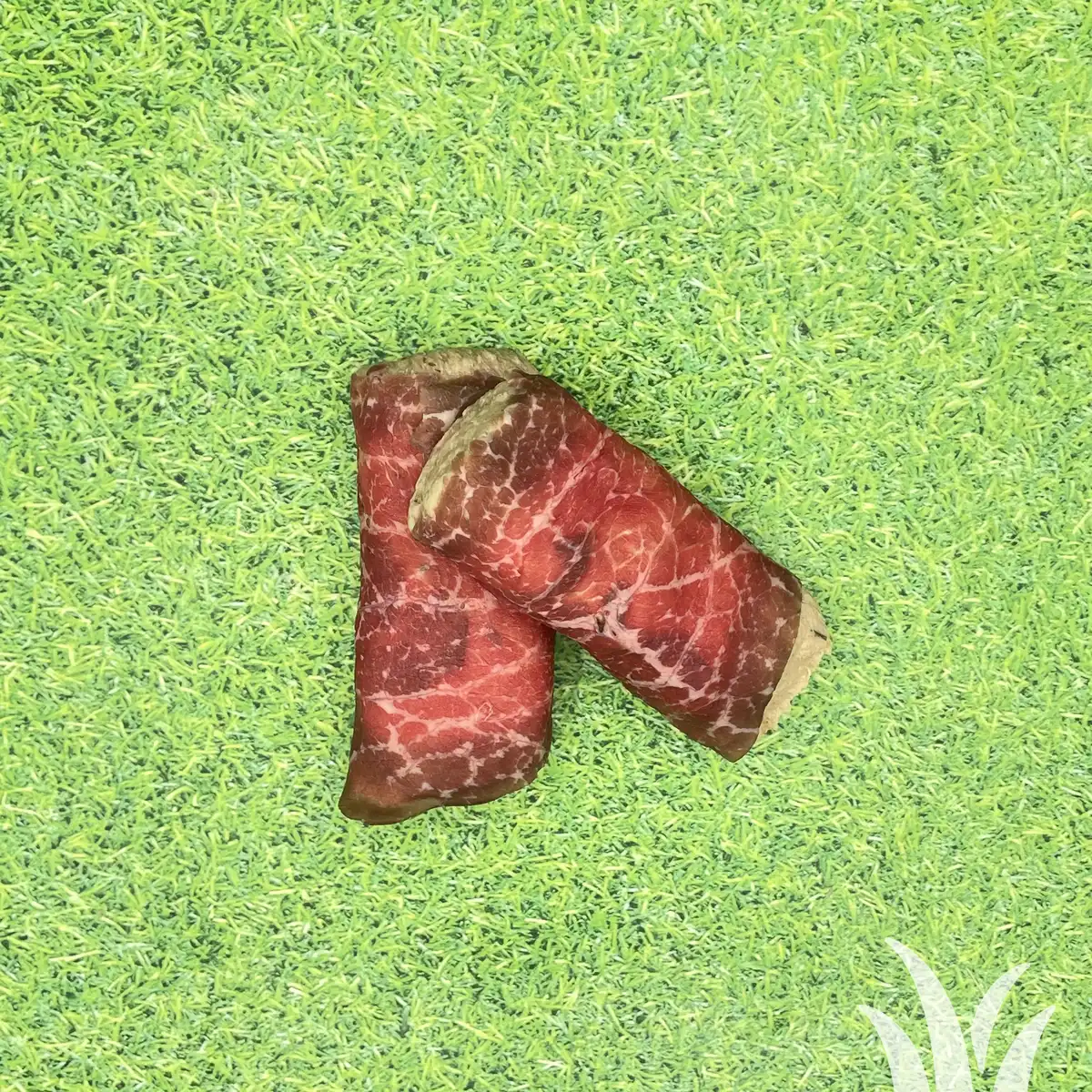 Gehakt van Puur Natuurkip gekruid met eigen recept pestokruiden omwikkeld met Graasrunderrookvlees. Bakken zonder boter! Gewicht ca. 100 gram