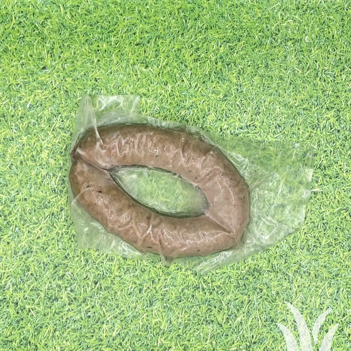 50% Graasrund & 50 % Puur Natuurkip. Voorgegaard; alleen opwarmen aan stuk of aan plakjes in het eten. Omhulsel is schapendarm. Gewicht ca. 130 gram