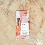 Puur Natuurprodukt van Udea. Bevat;Cacaomassa**, cacaoboter**, cacao poeder**, bloedsinaasappel essentiële olie* (0,4%). Cacao: 100%. Inhoud 90 gram